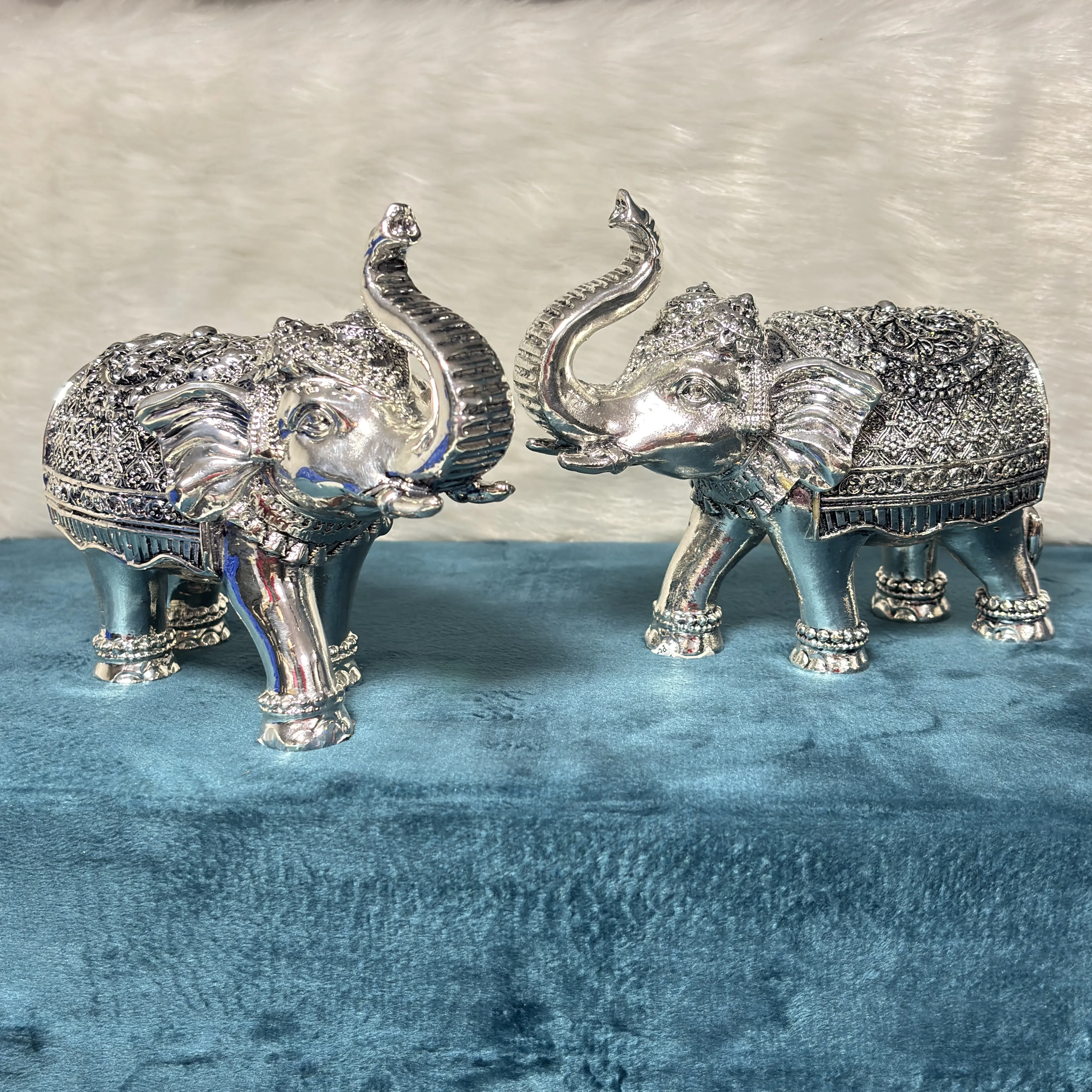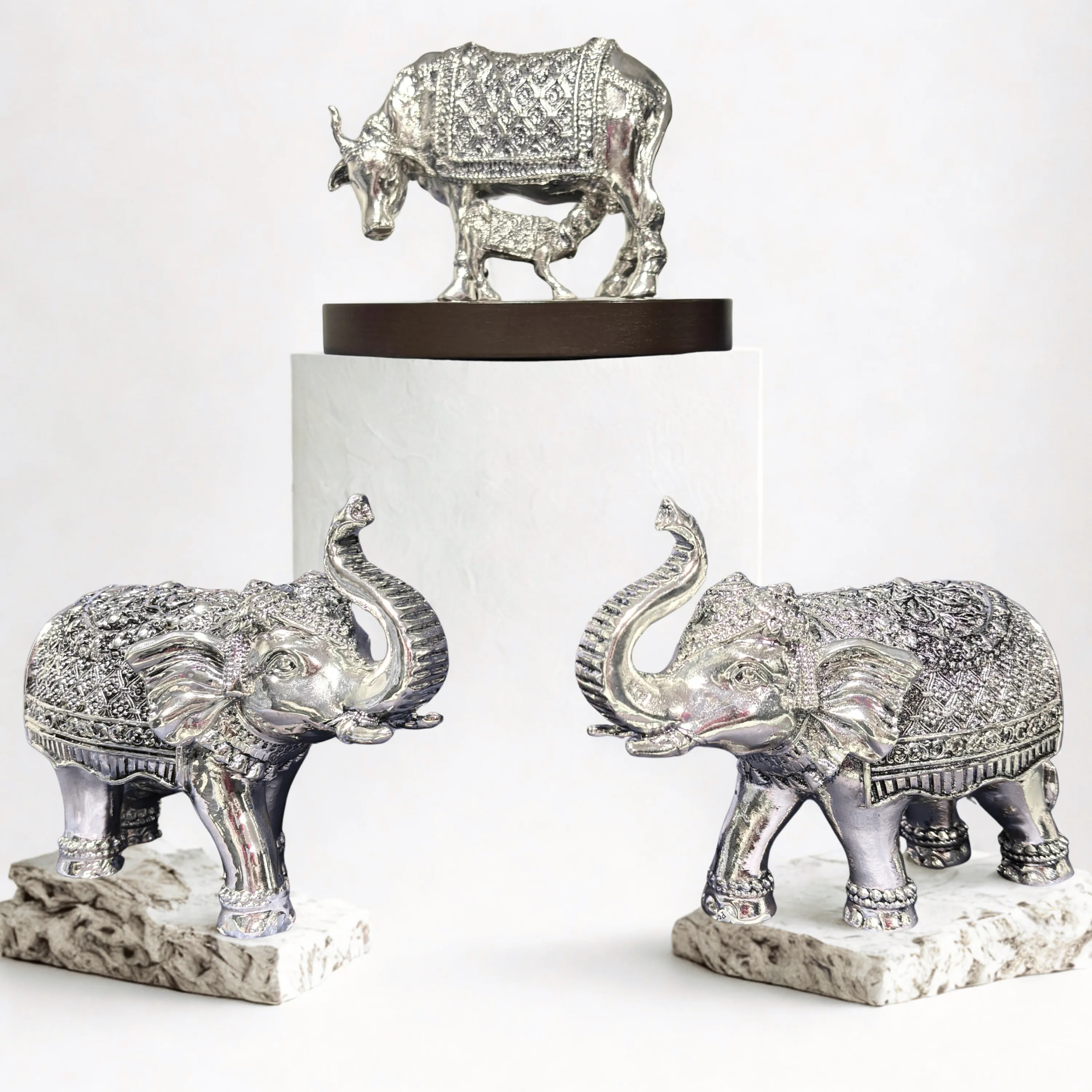 Silver Wax Cow and Elephant Set, Silver Wax Decorative items, Silver Wax Products