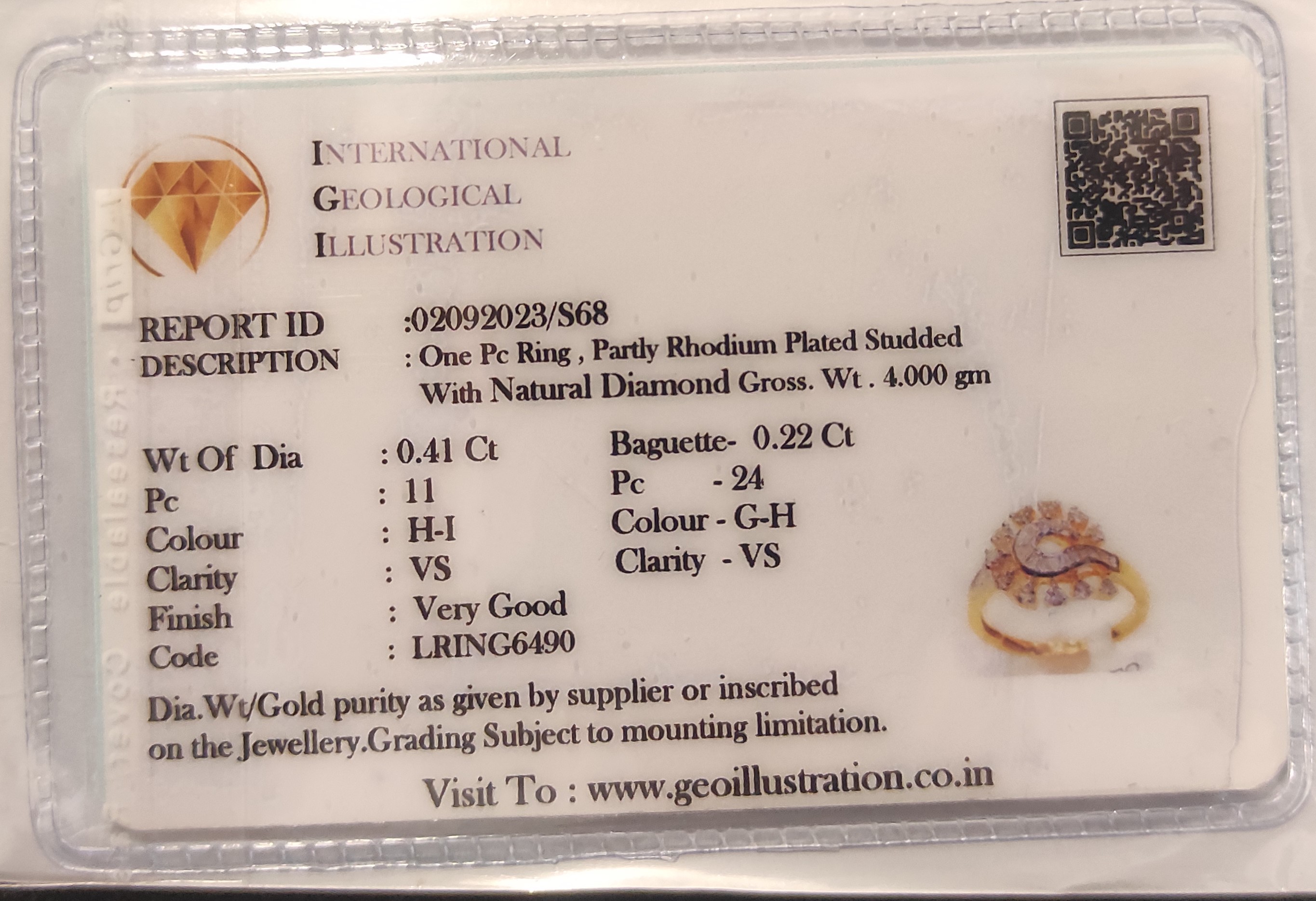 | 2 | VS | G-H | PRONG | BAGUETTE | 24 | .22 |